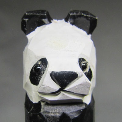 パンダが大きく彫刻された木製ボールペンです。
