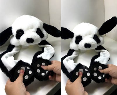 パンダの手のひらをググッと握るとパンダの耳がピコピコ動くんです。