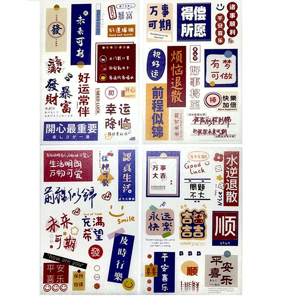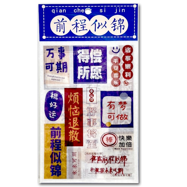 中国語でいろんなポジティブワードが、可愛い文字デザインで並んでます。