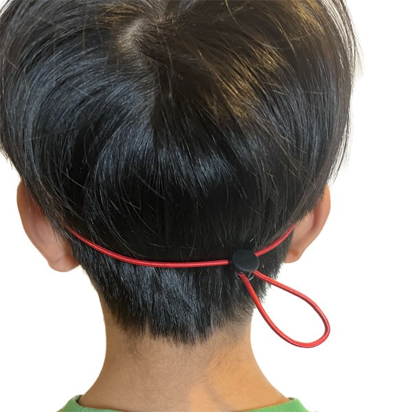 長さを調整できるゴム紐付きなので、頭に固定しやすいです。