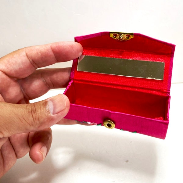 ホックボタンを外すと内側に7.5cm×1.5cmのミラーが付属していてお化粧直しに便利です。