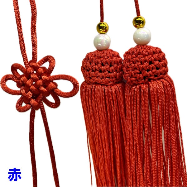 2つの房の頭が編み込んであり、中国結びという飾りになっています。