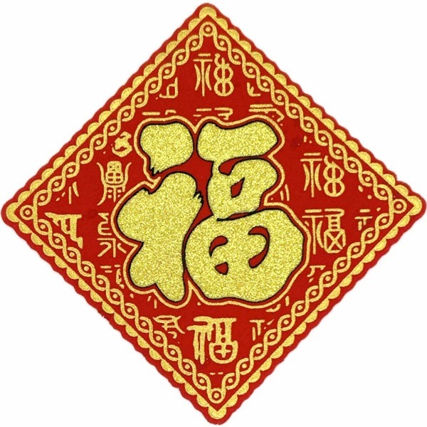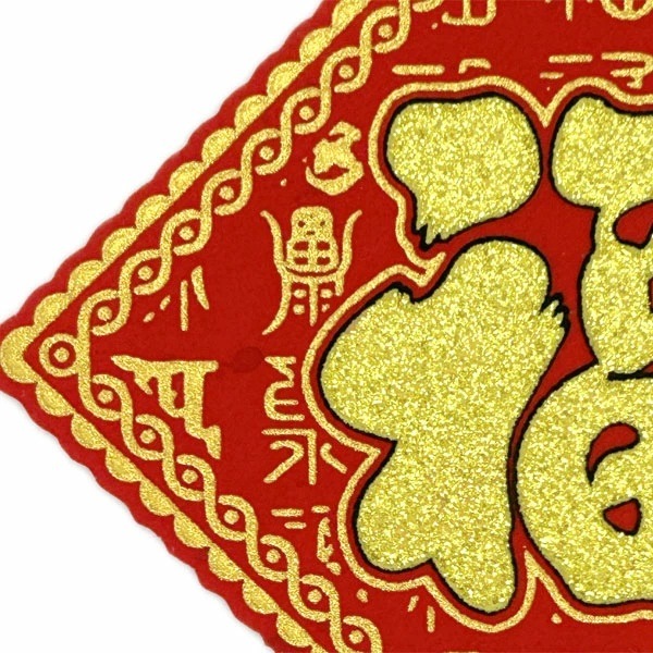赤い紙に金色で縁起の良い文字を書いて、家の飾りに使う風習が中国にあります。