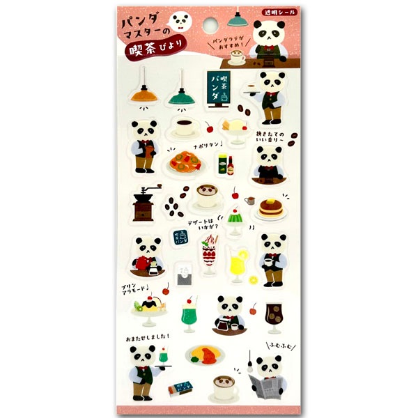 働きもののパンダマスターの、ちょっぴり忙しくてユーモラスな1日を描いたシールセットです。