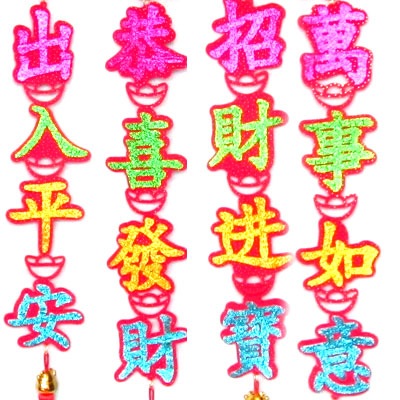 出入平安、恭喜発財、招財進宝、万事如意の文字には、それぞれに深い意味があります。