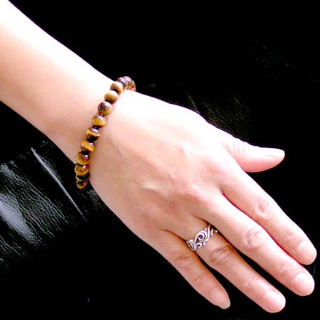 宝石の中では比較的廉価で半貴石に分類されるため、天然石として扱われる場合もある。 虎目石はその名の通り猫科の肉食獣の瞳のように妖しい色をした魅惑的な石です。 非常に男性的な石で男性が持つと直感(シックス・センス)を刺激し、行動力に自信を持たせ、仕事を成功に導く力があると言われています。仕事をバリバリとこなすビジネスマンが好んで身につける石です。