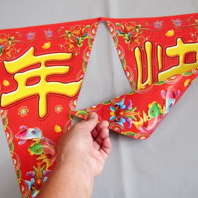 この三角旗は皆さんご存知の、中国の旧正月を祝う春節の時に使う旗です。