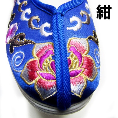 ぺったんこかかとのスリッポンタイプの中華シューズです。