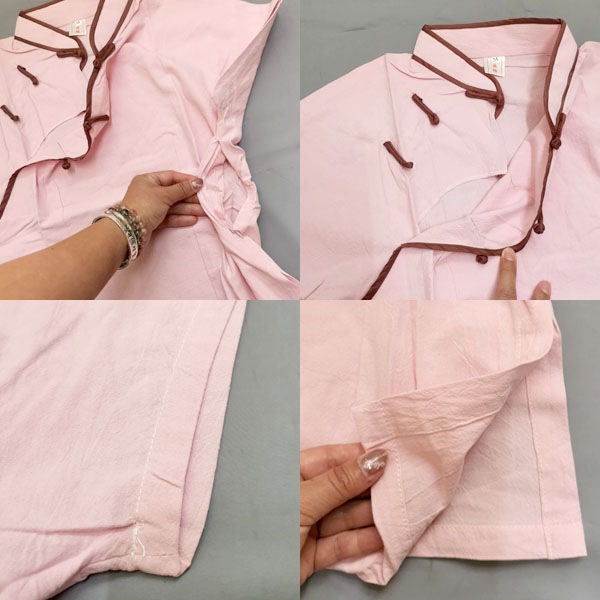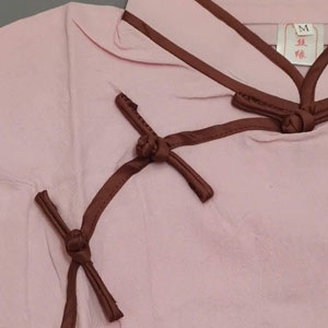 チャイナ服の特徴的なマオカラーにチャイナボタンが2つ付いています。