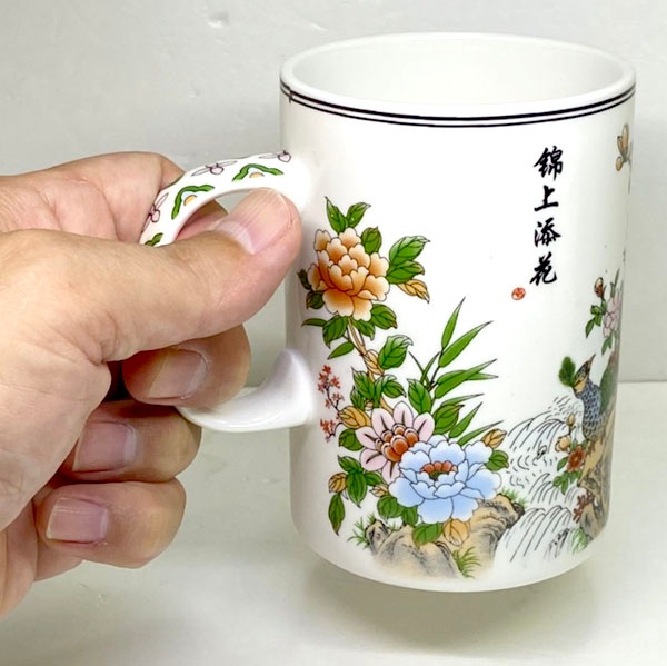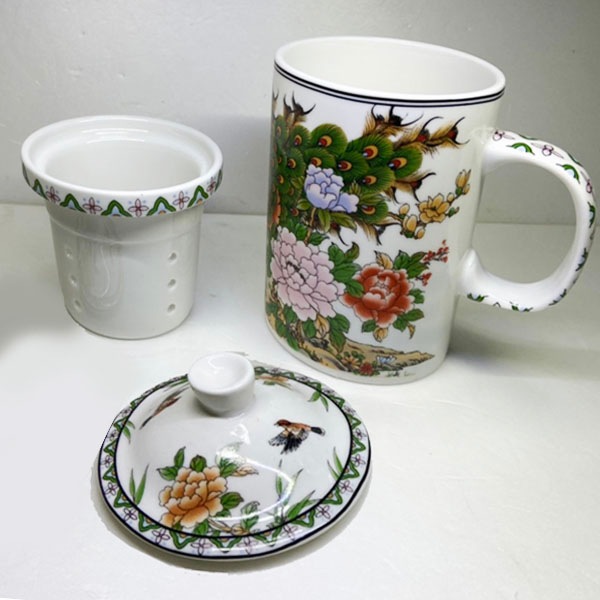 綺麗な孔雀が目を引く茶漉しマグカップ!