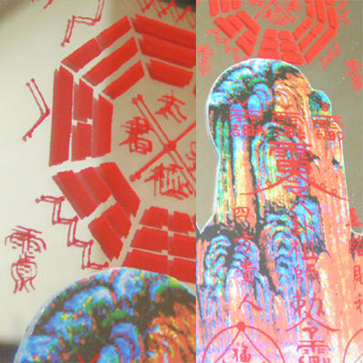 八卦・護符・龍脈など、あらゆる開運要素が描かれた平面鏡です。