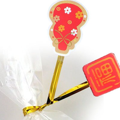 プレゼント包装をカンタンにオシャレにまとめられる福字ビニタイ!大きめの包装紙の口元をキュっとまとめて、ビニタイでクルッと巻けばカンタンにプレゼント包装ができます。