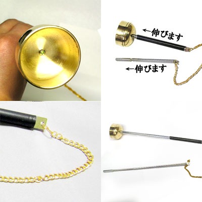 その際に使うお鈴で、携帯しやすく持ち手部分や突き棒が伸縮します。