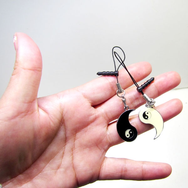 陰陽丸形ペアストラップ白黒(ネコポス便可) |開運, ケータイ,グッズ,インヤン,中国,風水,開運,根付け,キーホルダー,スマホ,チャーム,中華街,レトロ,雑貨,ノスタルジック,お土産,ギフト,誕生日,プレゼント