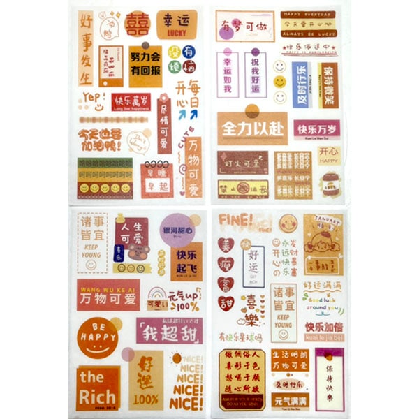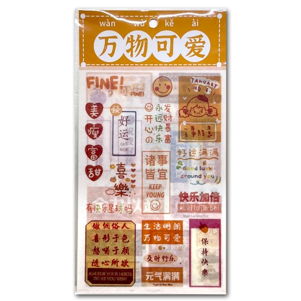 中国語でいろんなポジティブワードが可愛い文字デザインで並んでます。
