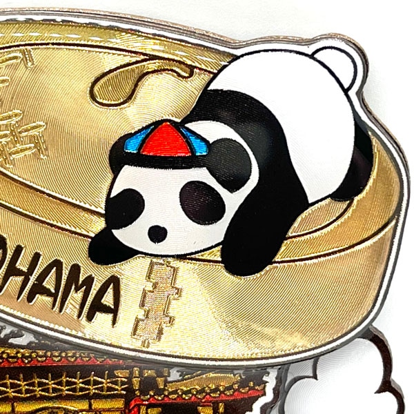 中華帽をかぶった可愛いパンダや派手な中華門、美味しそうな中華まん、焼売、ギョウザなど中華街らしさがいっぱいです。
