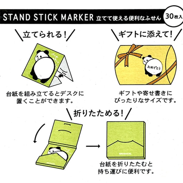 おしりにいろんなことを書き込めるパンダ付箋は愛嬌たっぷりです。