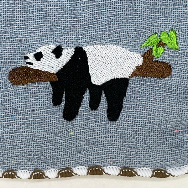 リラックスした様子のパンダが丁寧な刺繍で描かれています。