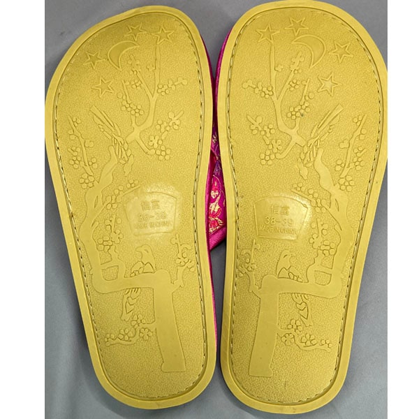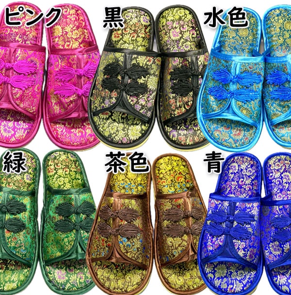 美しい色と柄が特徴のサテンチャイナボタン付きスリッパは、さらりとした触り心地が魅力です。