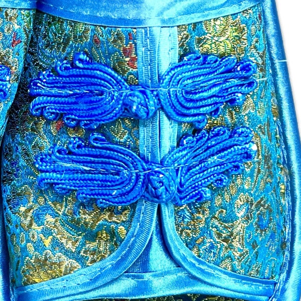 サテン生地を使用し上品な光沢とともに、可愛い中華ボタンがアクセントとなっています。
