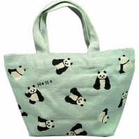 使い勝手の良いコンパクトなパンダバック!ちょっと小ぶりなパンダトートバック。薄いグリーンの色合いがとてもお洒落で、シンプルなパンダのイラストが魅力的です。お散歩やちょっとしたお出かけに使えるとっても便利なトートバッグです。内側にはポケットが付いているので、カギや交通系ICカードなどの小物を入れるのに便利です。たっぷりのマチがあるから、かさ張るモノを入れてもバックの形がくずれにくいんです。パンダが「Hello」とあいさつするデザインが、持つたびに心を和ませてくれます。■サイズ:横30cm×縦22cm×マチ10cm(バック本体)、12cm(持ち手長)■素材:綿100%■中国製■ネコポス便:1つまで可能!(制限あり!)