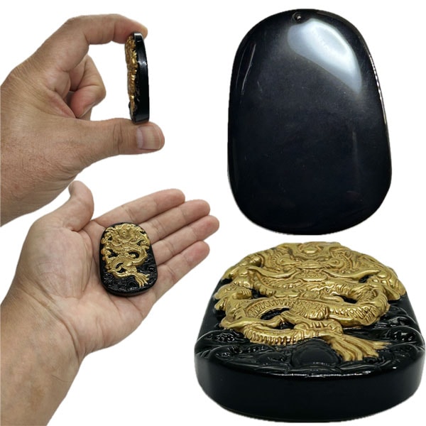 黄金龍オブシディアンペンダントトップは、力強いドラゴンのデザインが特徴の風水アイテムです。