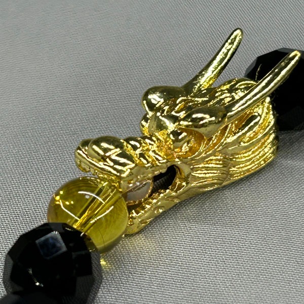 黄色玉を咥える様な龍とオニキスの風水パワーがあふれるブレスレットです。