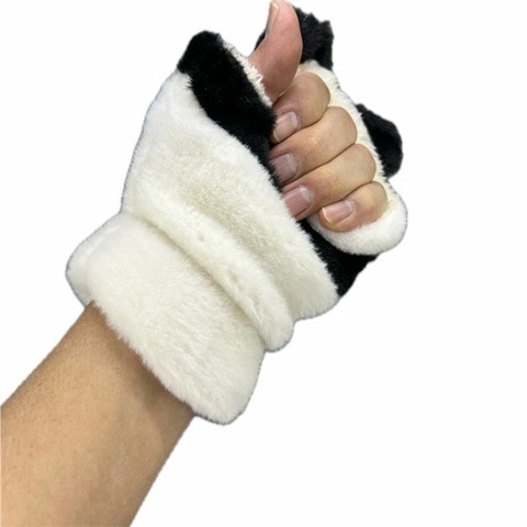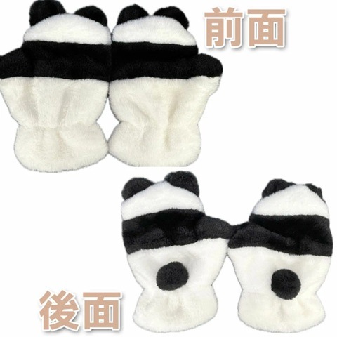 可愛らしいパンダのデザインが特徴のふわもこ手袋です。