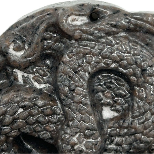 その神秘的な輝きを宿した石に、力強く絡む蛇の彫刻を施しました。