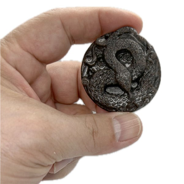 Φ4.6cmの存在感あるサイズながらも手になじむ滑らかな仕上がりで、細やかな鱗のディテールやうねる蛇の姿が圧倒的な迫力を放ちます。
