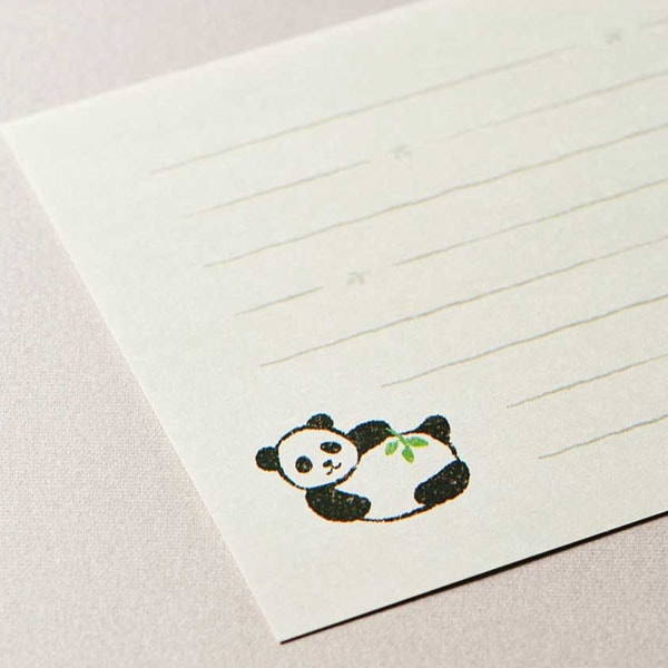 のんびりとリラックスしたパンダが目印の便箋が印象的で、ゆったり気分でお手紙を書けますよ。