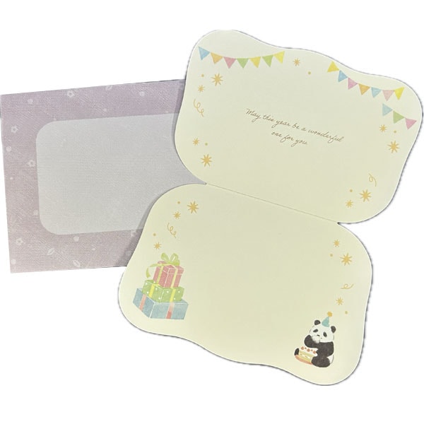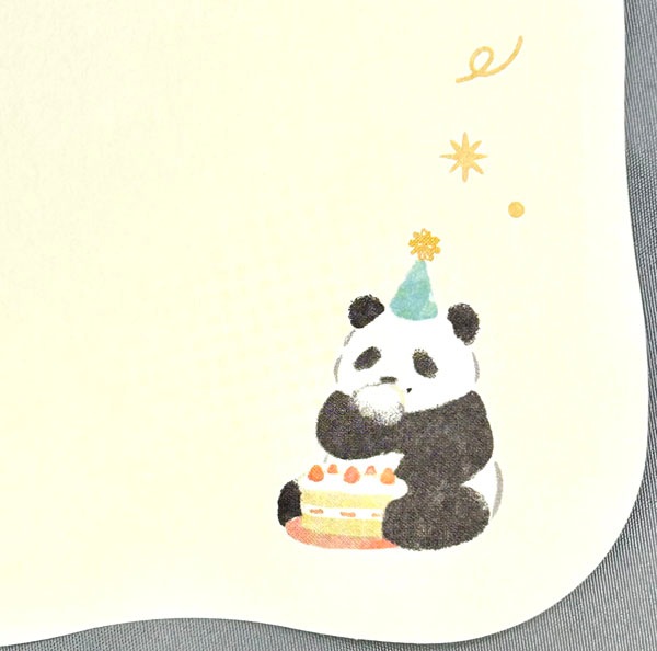 ふんわり優しいタッチのパンダが祝ってくれる、心温まるバースデーカードです。