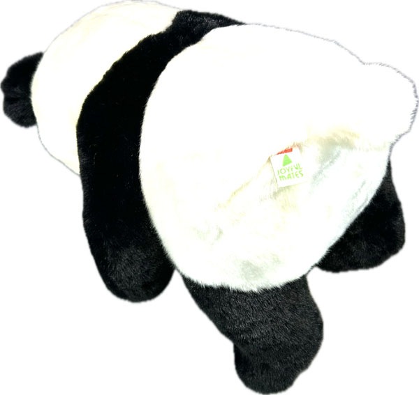 まあるいフォルムとやさしそうな目が可愛い、ふわふわのラッキーパンダぬいぐるみ。