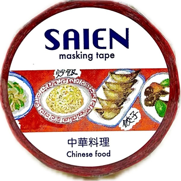 ラーメン、餃子、チャーハンなど、人気の中華料理がずらりと並んだユニークなマスキングテープ。