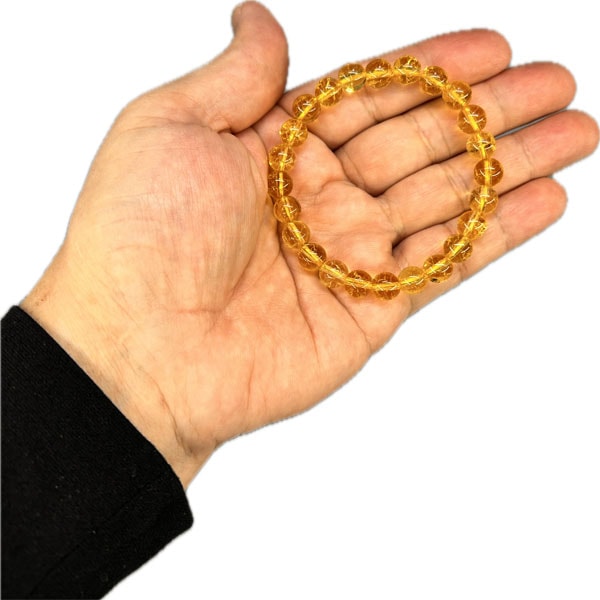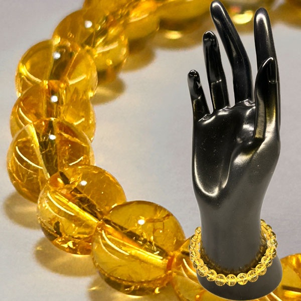 内部のクラック(亀裂)に光が干渉して虹色に輝く現象を利用したもので、通常のシトリンの効果に加え癒しやネガティブなエネルギーの好転、自己表現のサポートといった意味合いが強調されます